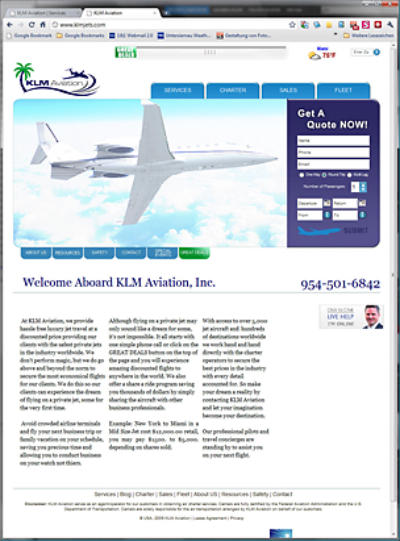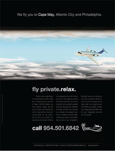 KLM AviationKombinierte Online/ Printwerbung für einen PrivateJet Charter Broker. Zielgruppe waren viel reisende Manager und Geschäftsleute an der amerikanischen Ostküste.